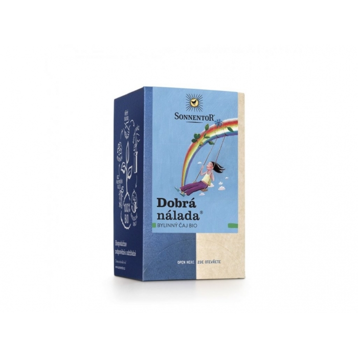 Dobrá nálada je nejstarší a možná nejoblíbenější bylinnou čajovou směsí Sonnentoru. Je v ní to nejlepší, co bylinky našeho kraje nabízejí, a chutná jak dospělým, tak dětem. Když si do čaje přidáte pár kapek citronu, vykouzlíte vynikající čajovou specialitu pro každou příležitost. S oblibou se říká, že dobrá nálada se šíří rychle a s tímto čajem určitě vykouzlíte úsměv na tváři.