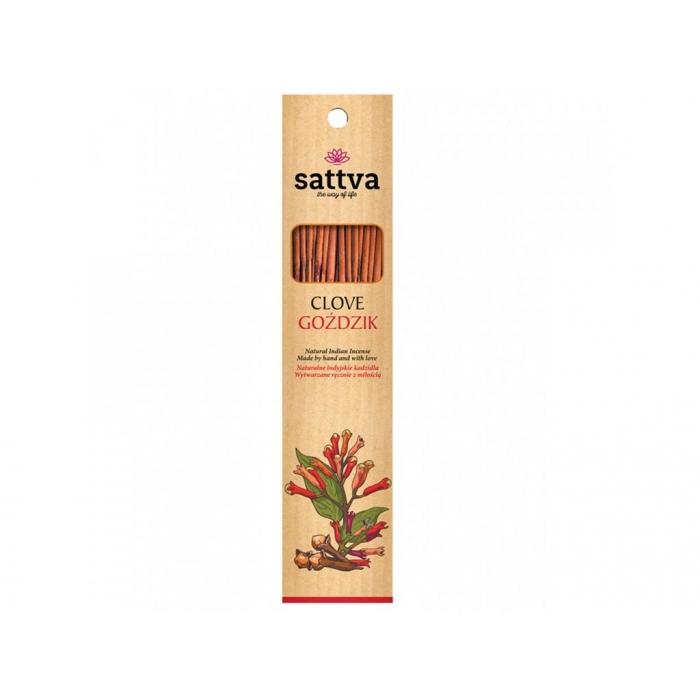 Vonné tyčinky Sattva jsou dílem poctivé ruční výroby. Jsou vyráběny podle tradičního indického způsobu starého 400 let. Vonné tyčinky s hřebíčkem přinesou do vašeho domova jemnou, sladkou, ale přesto výraznou a dřevitě kořenitou vůni tohoto koření. Pomůže vám rozptýlit negativní emoce, zvyšuje optimismus a zlepší atmosféru v prostoru.