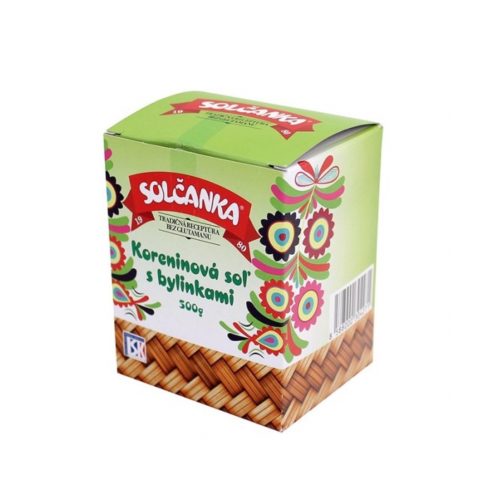Mořská sůl (80%), sušené byliny v různém poměru (5%): libeček, dobromysl, saturejka, bazalka, mateřídouška, meduňka, tymián, petrželová a celerová nať; sušený česnek, sušená cibule, kmín drcený, muškátový ořech mletý, pepř čtyřbarevný.