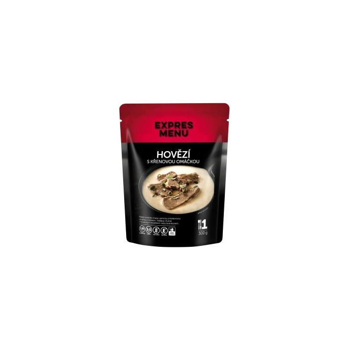 hovězí maso přední (33 %), hovězí vývar (voda, hovězí maso a kosti), mléko, křen (6,7 %), smetana, rýžová mouka, kukuřičná mouka, máslo, cukr, sůl kuchyňská, ocet kvasný.