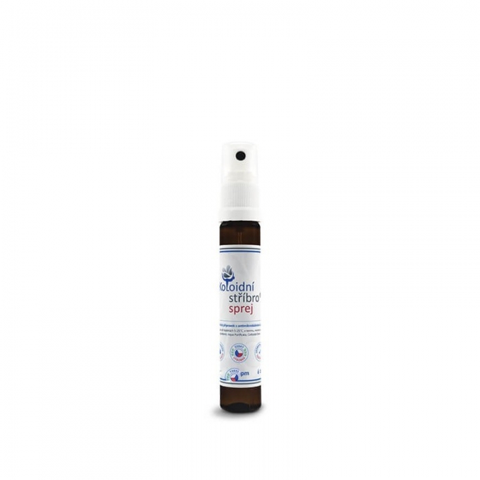 Koloidní stříbro je čisté metalické stříbro (Ag+), suspenzované (rozložené a rozptýlené) v čištěné vodě (H2O) Aqua Purificata. Velikost částic je v řádu nanometrů.