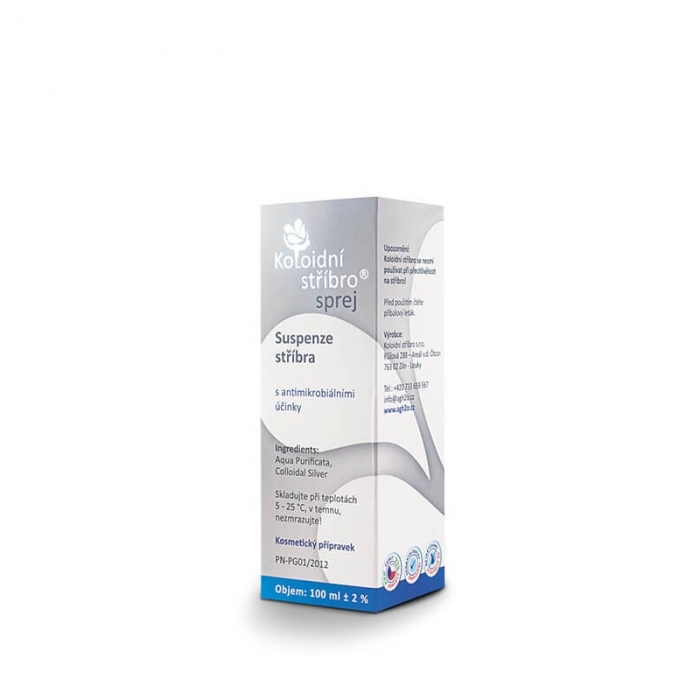 Koloidní stříbro je čisté metalické stříbro (Ag+), suspenzované (rozložené a rozptýlené) v čištěné vodě (H2O) Aqua Purificata. Velikost částic je v řádu nanometrů.