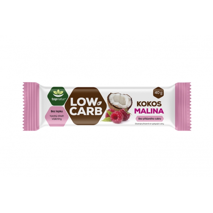 LOW CARB bezlepková tyčinka Kokos&Malina s vysokým obsahem vlákniny.