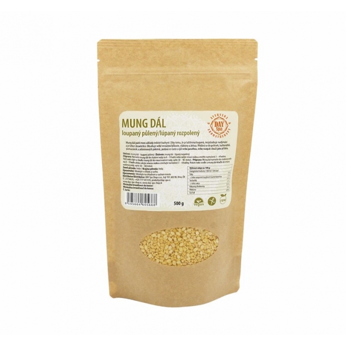Loupané půlené mungo fazole pro recepty klasických i veganských pokrmů. Mung dál patří mezi bohaté zdroje bílkovin. Loupané zrno zaručuje rychlou přípravu.