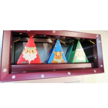 Veselé a voňavé vánoční figurky potěší velké i malé milovníky čaje a Vánoc! Originální ozdoby na vánoční stromeček v podobě závěsných figurek navodí během Vánoc či adventu veselou atmosféru a jejich obsah zase krásnou vůni. Čaje v pyramidce jsou netradiční variantou čokoládových ozdob. A navíc příjemně zahřejí!