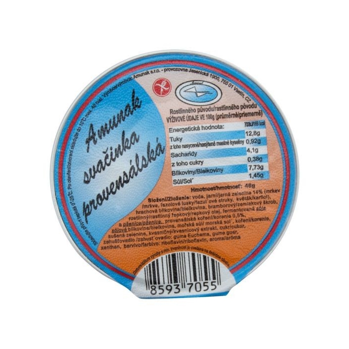 Složení: Voda, jarní zelenina 14% (mrkev, fazolové lusky, květák), hrachová bílkovina, bramborový škrob, rostlinný řepkový olej, fermentovaná SÓJA a PŠENICE, provensálské koření (0,5%), SÓJOVÁ bílkovina, mořská sůl, koření, sušená zelenina, kvasničný extrakt, cukr, zahušťovadla: guma Euchema, guma guar, xanthan, barvivo: riboflavin, aroma.