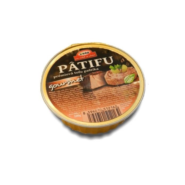 Vyniká velmi jemnou konzistencí a výbornou, vyváženou chutí, která připomíná masnou paštiku. Praktické balení v ALU misce lze snadno otevřít a paštiku pohodlně nabírat. Další výhodou paštik PATIFU je dlouhá trvanlivost při teplotě 25°C. Tato trvanlivost je dosažena pouze díky sterilování (tzn. zahřátí výrobku na cca 120°C).