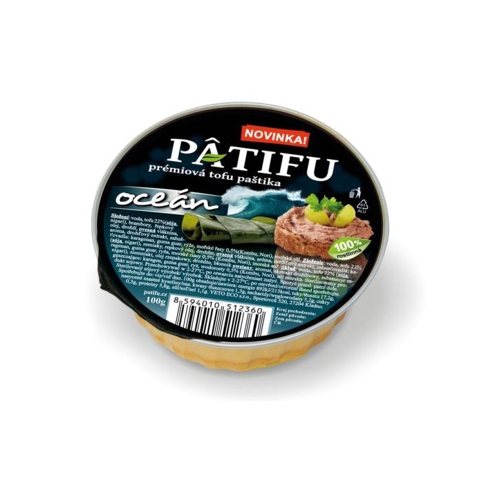 Nejnovější příchuť v řadě oblíbených prémiových tofu paštik Patifu. Oceán je perfektně roztíratelná pomazánka s mořskou řasou. 100% rostlinná. Pro opravdové vege gurmány.