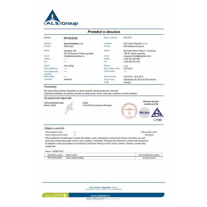 Tradiční užití: Hlívu ústřičnou v sušeném stavu přidáváme do jídel dle chuti v množství 1,5–8 g denně.