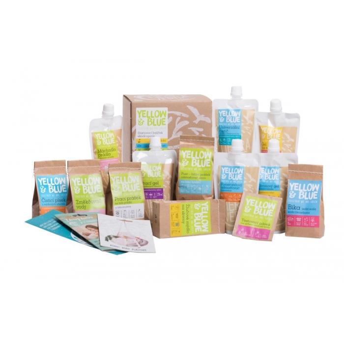 Chcete si vyzkoušet, jak pečovat o domácnost s ekologickými prostředky YELLOW & BLUE? V této startovací sadě najdete deset produktů, díky kterým vyperete bílé i barevné prádlo, zbavíte je skvrn, šetrně umyjete nádobí a vyčistíte celou vaši domácnost. Jak jednotlivé produkty používat a kombinovat vám napoví přiložené letáčky. Tato sada se může stát i zajímavým dárkem, pokud toužíte někoho "ozelenit" :-)