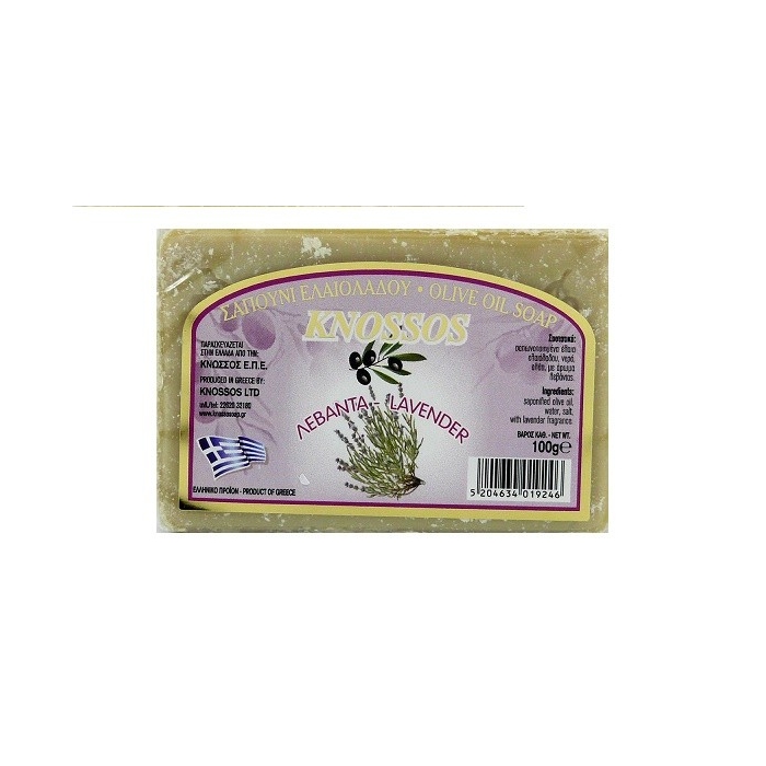 Tradiční řecké olivové mýdlo značky Knossos s osvěžující vůní levandule výborně čistí a přitom zvláčňuje pokožku a je vhodné pro všechny typy pleti.