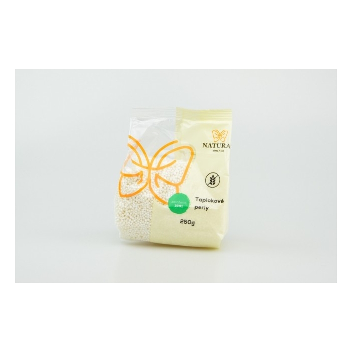 Tapioca je škrob získaný z kořene manioku nebo yuci. Maniok je rostlina původem z Jižní Ameriky a Západní Indie, kde jsou jeho silné, vláknité kořeny používány v různých formách. Použití: Z tapiokových perel připravíte výborný přírodní pudink, kaši pro děti, bubble tea, ale můžete ji použít i jako zahušťovadlo do polévek (na způsob krupek nebo kapané zavářky), nebo krém do ovocných koláčů. Tapioku můžete též použít místo rýže.